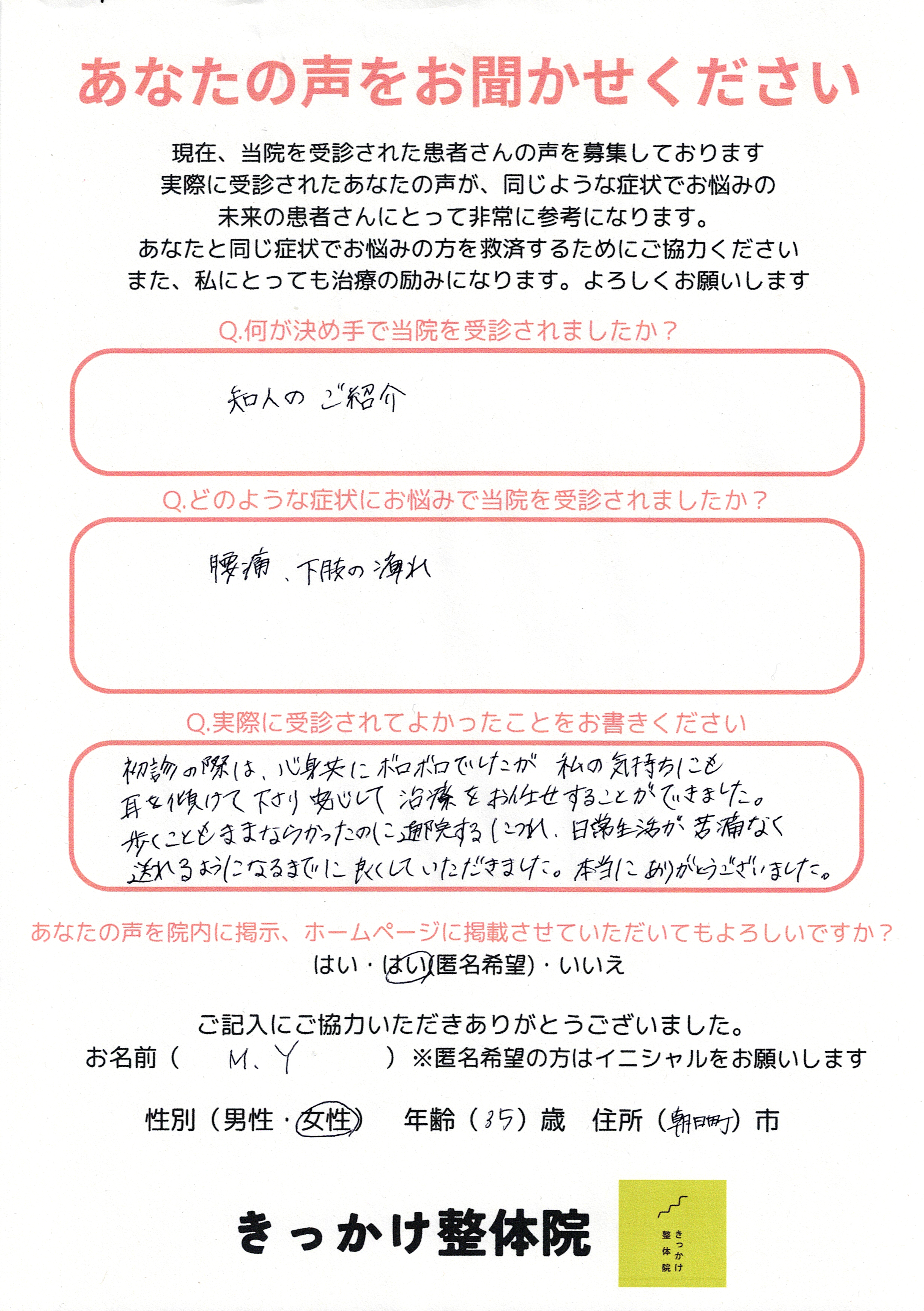 そして何より嬉しかったのは、患者さまから聞けた言葉です。