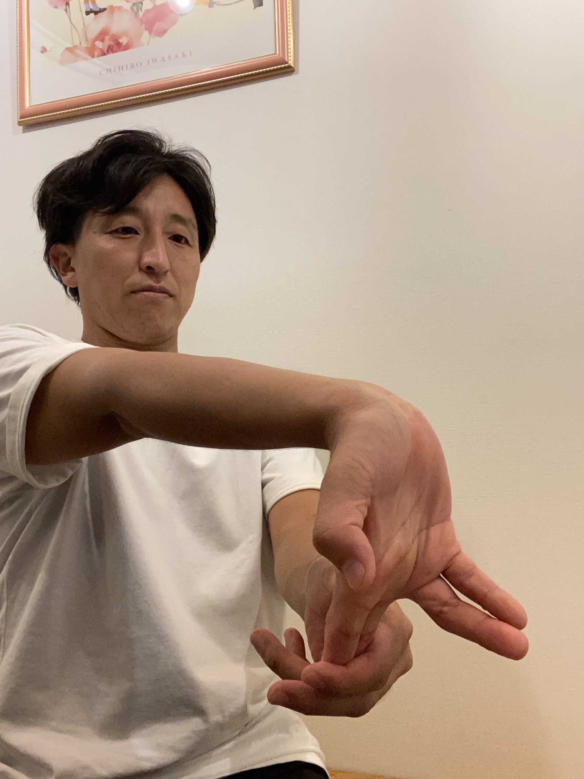 2️⃣実は疲れが溜まっている腕の部分と指!ここのストレッチも効果的です。ポイントは人差し指と中指を掴み引っ張ること!!